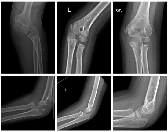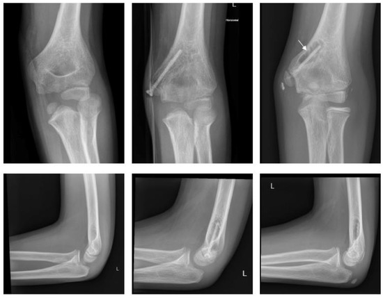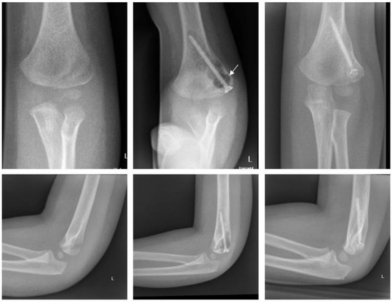 - Su, Y.; Nan, G. Treatment of Medial Humeral Epicondyle Fractures in Children Using Absorbable Self-Reinforced Polylactide Pins. Medicine 2020, 99, e19861. [Google Scholar] [CrossRef]