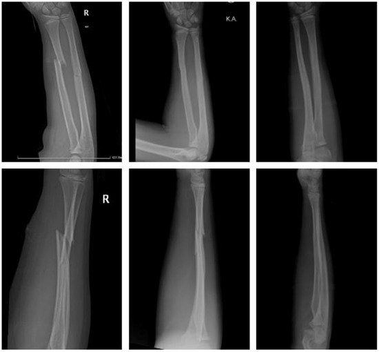 An eight-year-old girl sustained a displaced forearm shaft fracture. She underwent closed reduction and internal fixation the same day. Two bioresorbable PLGA-based intramedullary nails (Activa IM-NailTM 3.2 and 2.7 mm) were used. The postoperative course was uneventful. The upper limb was immobilized in a long cast for 3 weeks, followed by a short cast for two weeks. There was no clinical impairment.