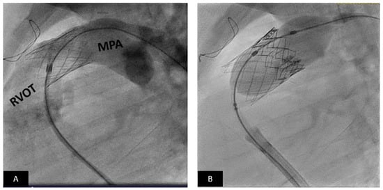 Most patients with CHD requiring surgical repair via either right ventricular outflow tract reconstruction or placement of a right ventricle to pulmonary artery conduit or bioprosthetic pulmonary valve ultimately develop right ventricular outflow tract dysfunction in the form of pulmonary regurgitation or stenosis. These defects include tetralogy of Fallot, truncus arteriosus, pulmonary atresia with or without VSD, many forms of double outlet right ventricle, as well as patients treated with the Ross operation. The hemodynamic consequence of chronic pressure and/or volume overload is progressive right ventricular dilation and dysfunction. Traditionally, surgical conduit and/or pulmonary valve replacement (PVR) has been the standard therapy in this instance. The first transcatheter pulmonary valve replacement (TPVR) was performed by Bonhoeffer and colleagues in 2000 and since then TPVR is a viable alternative to surgical PVR [73]. The Melody valve (Medtronic, Minneapolis, MN, USA) was the first FDA approved TPV for use within dysfunctional right ventricle to pulmonary artery conduits between 16 and 22 mm in diameter [74]. Subsequently, larger diameter valves (i.e., Sapien XT and Sapien S3 [Edwards Lifesciences, Irvine, CA, USA]) have become available [74,75,76]. Both these balloon-expandable TPVs have been used (off-label) to treat dysfunctional bioprosthetic and native or surgically altered pulmonary outflow tracts. While revolutionary, these TPVs only addressed ~25% of the dysfunctional right ventricular outflow tracts [77]. The newer large diameter self-expanding TPVs [Alterra pre-stent and Sapien 3 (Edwards Lifesciences, Irvine, CA, USA) and Harmony (Medtronic, Minneapolis, MN, USA)] were specifically developed for large diameter dysfunctional outflow tracts; these valves are now FDA approved [77,78,79,80].