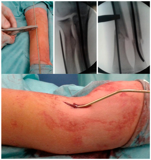 6], it was accepted. This is why closed epiphyseal plates are a limit for this procedure; those patients should be treated according to the rules of adult traumatology. There were no conversions to another procedure, e.g., plates or external fixation. However, if a good reduction cannot be achieved, a change of procedure using a plate must be taken into consideration, which is a well-established, but not a minimal-invasive, technique. We have not yet treated any patient with congenital bone disease (e.g., osteogenesis imperfecta or juvenile cysts), so no recommendations can be given for this group of patients. By no means can this surgical technique be successfully performed in open and contaminated wounds that require treatment with an external fixation device.
