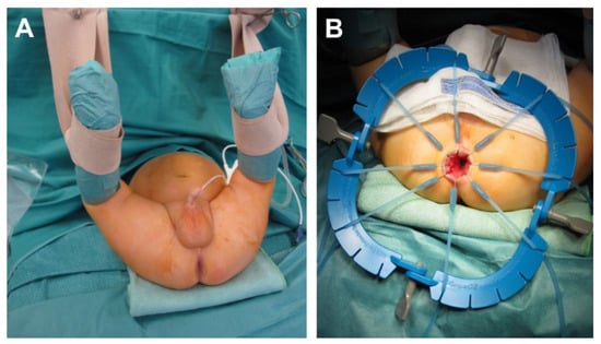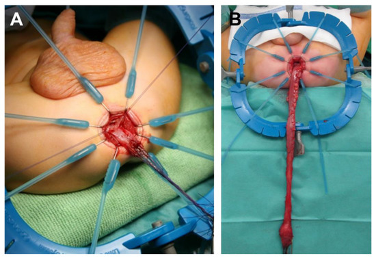 - Till, H.; Heinrich, M.; Schuster, T.; V Schweinitz, D. Is the anorectal sphincter damaged during a transanal endorectal pull-through (TERPT) for Hirschsprung’s disease? A 3-dimensional, vector manometric investigation. Eur. J. Pediatric Surg. 2006, 16, 188–191. [Google Scholar] [CrossRef]