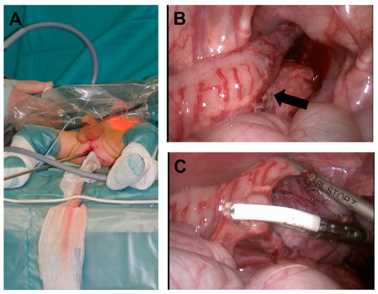 - Al-Qahtani, A.R.; Almaramhi, H. Minimal access surgery in neonates and infants. J. Pediatric Surg. 2006, 41, 910–913. [Google Scholar] [CrossRef]