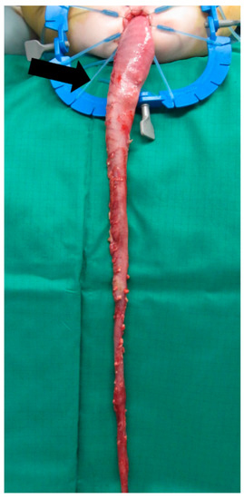 - Vahdad, M.R.; Cernaianu, G.; Semaan, A.; Klein, T.; Faran, S.; Zemon, H.; Boemers, T.; Foroutan, H.R. An experimental study in six fresh human cadavers using a novel approach to avoid abdominal wall incisions in total colectomy: Totally transanal laparoendoscopic single-site pull-through colectomy with J-pouch creation. Surg. Endosc. 2016, 30, 3107–3113. [Google Scholar] [CrossRef]