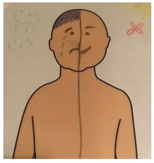 “Yes, I don’t feel like… I don’t have the same feeling all the time, so… I’ll draw onehalf of the body happy and the other half sad Figure 4.”