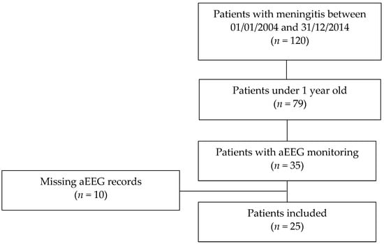 APA StyleBeck, J., Grosjean, C., Bednarek, N., & Loron, G. (2022). Amplitude-Integrated EEG Monitoring in Pediatric Intensive Care: Prognostic Value in Meningitis before One Year of Age. Children, 9(5), 668. https://doi.org/10.3390/children9050668