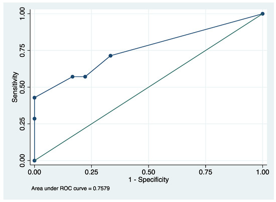| Characteristics 1 | Favorable Outcome Group n = 18 | Unfavorable Outcome Group n = 7 | p |