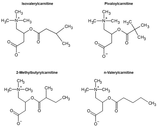 29. Janzen, N.; Steuerwald, U.; Sander, S.; Terhardt, M.; Peter, M.; Sander, J. UPLC-MS/MS analysis of C5-acylcarnitines in dried blood spots. Clin. Chim. Acta 2013, 421, 41–45. [Google Scholar] [CrossRef]