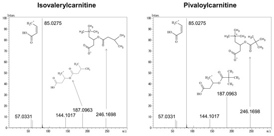 Figure 2. Product ion spectra of C5-acylcarnitine isomers.