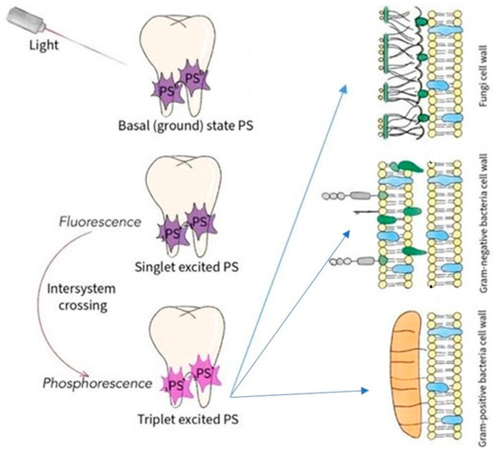 - Diogo, P.; Faustino, M.A.F.; Neves, M.G.P.M.S.; Palma, P.J.; Baptista, I.; Gonçalves, T.; Santos, J.M. An insight into advanced approaches for photosensitizer optimization in endodontics—A critical review. J. Funct. Biomater. 2019, 10, 44. [Google Scholar] [CrossRef] [Green Version]