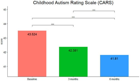 CARS mean scores at the three timepoints (***: p-value < 0.001).