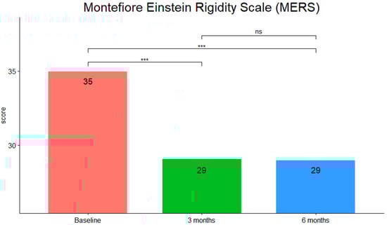 MERS mean scores at the three timepoints (***: p-value < 0.001; ns, not significant).
