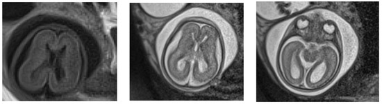 MRI at 24 weeks of gestation: no Sylvian fissure are seen; ventricular dilatation; the parieto-occipital and Sylvian fissures appear flat and the subarachnoid space is increased.