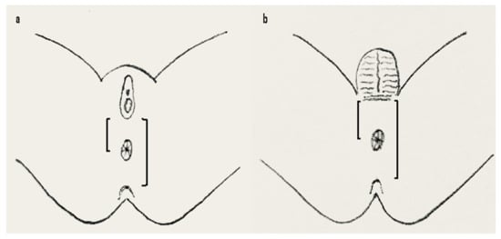 - Krantz, K.E.; Atkinson, J.P. Pediatric and adolescent gynecology. I. Fundamental considerations. Gross anatomy. Ann. N.Y. Acad. Sci. 1967, 142, 551–575. [Google Scholar] [CrossRef]