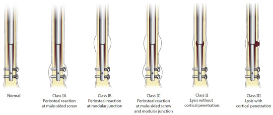 - Gittings, D.J.; Dattilo, J.R.; Hardaker, W.; Sheth, N.P. Evaluation and treatment of femoral osteolysis following total hip arthroplasty. JBJS Rev. 2017, 5, 9. [Google Scholar] [CrossRef] [PubMed] [Green Version]