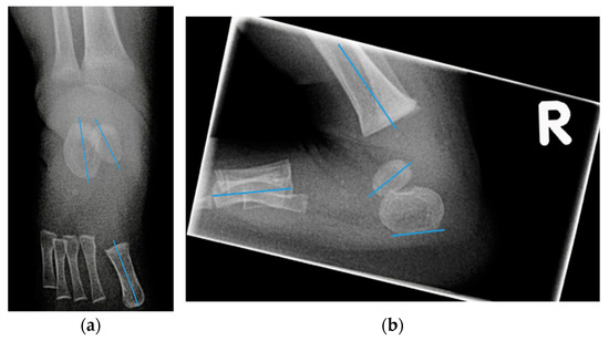 - Zimmerman, C.C.; Nemeth, B.A.; Noonan, K.J.; Vanderbilt, T.P.; Winston, M.J.; O’Halloran, C.P.; Sund, S.A.; Hetzel, S.J.; Halanski, M.A. Reliability of Radiographic Measures in Infants with Clubfoot Treated with the Ponseti Method. J. Child. Orthop. 2015, 9, 99–104. [Google Scholar] [CrossRef] [Green Version]