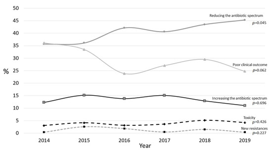 - Ruiz, J.; Ramirez, P.; Gordon, M.; Villarreal, E.; Frasquet, J.; Poveda-Andres, J.; Salavert-Lletí, M.; Catellanos, A. Antimicrobial stewardship programme in critical care medicine: A prospective interventional study. Med. Intensiv. 2018, 42, 266–273. [Google Scholar] [CrossRef]