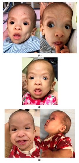 - Chiu, A.T.; Zhu, L.; Mok, G.T.; Leung, G.K.; Chow, C.; Chung, B.H. Before and after—Nutritional transformation of dysmorphism in a case of Costello syndrome. Eur. J. Med. Genet. 2016, 59, 573–576. [Google Scholar] [CrossRef]
