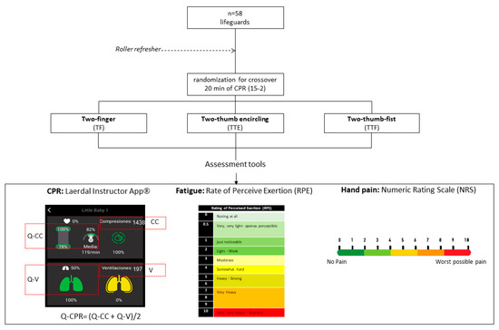 - Reynolds, C.; Cox, J.; Livingstone, V.; Dempsey, E.M. Rescuer exertion and fatigue using two-thumb vs. two-finger method during simulated neonatal cardiopulmonary resuscitation. Front. Pediatr. 2020, 8, 133. [Google Scholar] [CrossRef] [PubMed]