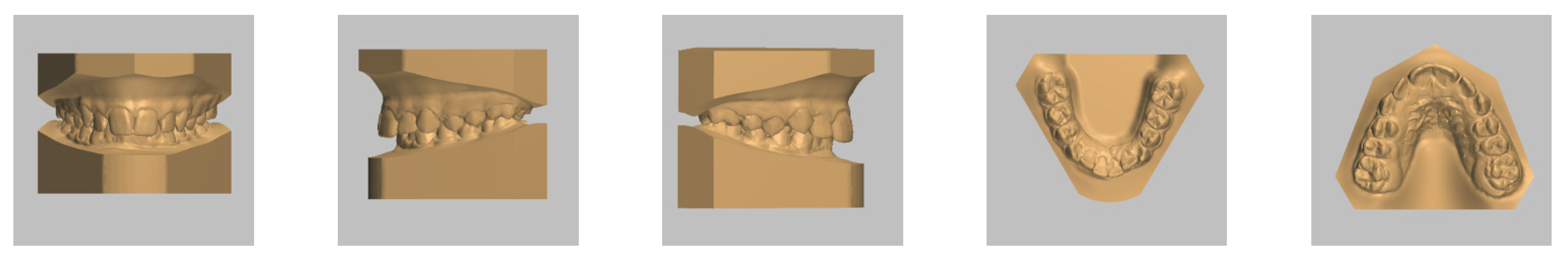 - Inchingolo, A.D.; Patano, A.; Coloccia, G.; Ceci, S.; Inchingolo, A.M.; Marinelli, G.; Malcangi, G.; Montenegro, V.; Laudadio, C.; Pede, C.D.; et al. The Efficacy of a New AMCOP® Elastodontic Protocol for Orthodontic Interceptive Treatment: A Case Series and Literature Overview. Int. J. Environ. Res. Public Health 2022, 19, 988. [Google Scholar] [CrossRef]