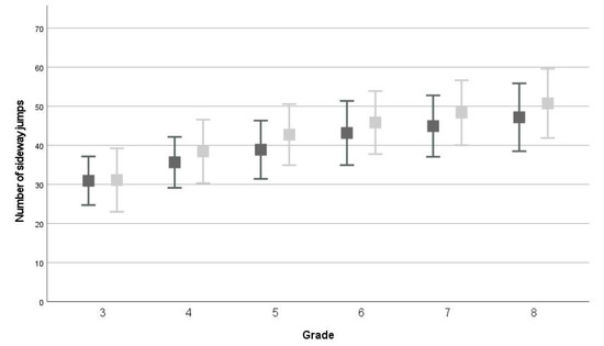 The main strengths of this study are its large sample size and the broad range of grades. Comparable studies from Dos Santos et al. (2018) [15] and Coppens et al. (2019) [12] had significantly smaller samples sizes (all between 200 and 500 participants) and a smaller range of ages. With 2594 children, this study had a representative sample for the Dutch primary school population from grades 3–8. However, the first limitation is that the KTK3+ test does not measure all GMC aspects extensively (e.g., walking and kicking). When using the KTK+3 test, all three categories of GMC performance can be assessed in a limited time [10]. Secondly, we did not measure what children did during PE classes and outside school (i.e., playing outside, playing sports) between the first and second measurement. All participating PE teachers used the Dutch handbook of PE [20] although teachers have great autonomy to decide what to do in their classes. Further research to improve our insights into children’s GMC developmental trajectories in one school year should include other factors such as sport participation, social-economic status, outdoor play opportunities, and quality of PE classes.