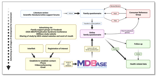 Our comprehensive review of all case studies/series of individuals with MDS since 1999 identified some clinical areas that had received limited attention. We believed this could be addressed by the creation of an international registry for collection of more powerful and generalisable data for the disorder [4]. Cases of individuals with MDS have been ascertained alongside individuals with a MECP2 mutation in the InterRett [19], thus forming an important platform for our development of the international MECP2 Duplication Database (MDBase) in 2020. Following the success of InterRett and the ICDD [15,20,21], and informed by ongoing stakeholder engagement, our group created the MDBase in their likeness [9]. In this methodological paper, we illustrate the development of an international registry for MDS. Our aims were to (1) develop a family questionnaire to collect health-related data to address knowledge gaps; and (2) ascertain a large population of individuals with MDS for research. We reflect on the successes and limitations of our approach and make suggestions for the establishment of databases for other RNDDs.