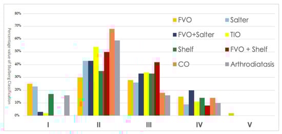 3.4. Radiographic Stulberg Outcome of the Single Surgical Techniques