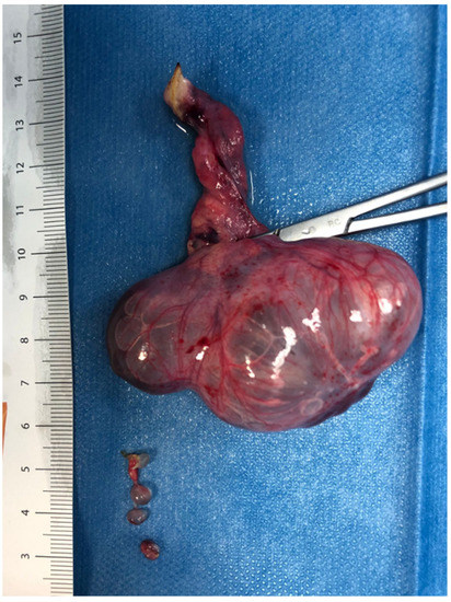 13. Takayasu, H.; Masumoto, K.; Tanaka, N.; Aiyoshi, T.; Sasaki, T.; Ono, K.; Chiba, F.; Urita, Y.; Shinkai, T. A clinical review of ovarian tumors in children and adolescents. Pediatr. Surg. Int. 2020, 36, 701–709. [Google Scholar] [CrossRef]