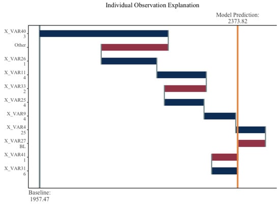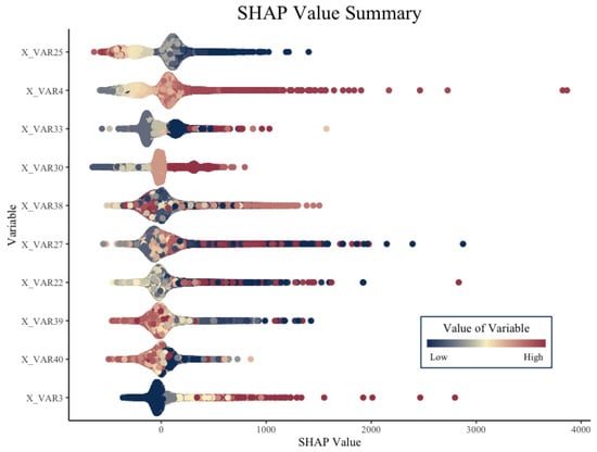 Recall that the sum of the SHAP values for each covariate and the average model output must add up to the model prediction. For simplicity in presentation, we will define , , and and the contribution of the jth predictor to as . With these considerations in place, we can define the output space of our three models on the training data set, as shown in Equations (3) to (5).