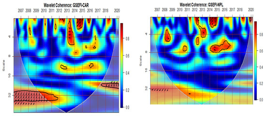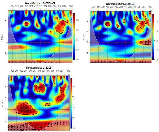 Amegavi et al. 2022). This contributes to the dynamic investigation of the comovements among the variables under consideration.