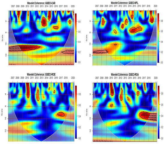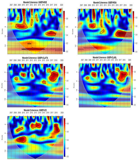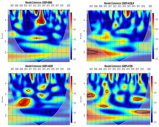 Duarte et al. 2022). This brings up a discussion on whether the synergistic effect of listed firms that represent the financial sector and the banking sector’s financial soundness measures are dominant forces. The nexus between a market-based system vis-à-vis a comparative discourse on a significant market-based driver could be observed across time and frequency (