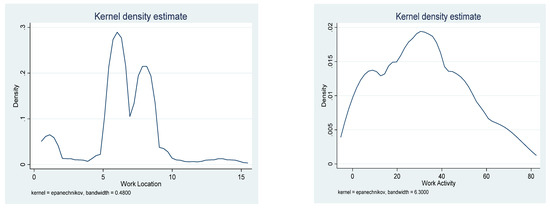 To observe the distribution of our data/the main indicators used in the empirical analysis and to observe whether the data follow a normal distribution, we designed Kernel density estimates per each indicator, as presented in Figure 3.