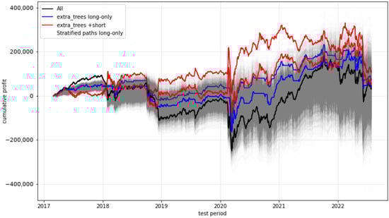 - Last, but not least, the only purely profit-related metric for which we could find a statistically significant outperformance over the trade-always strategy is the maximum drawdown. Here again, almost all our models (except SVM) show a drastic improvement. This leads us to suspect that the models performed well in learning to detect and avoid potential large losses:Table A16. Models with significantly better mean maximum drawdown.Table A16. Models with significantly better mean maximum drawdown.