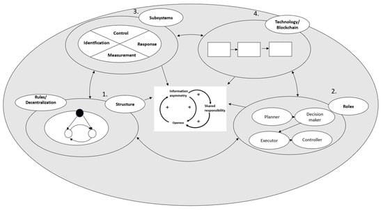 The enumerated threats and many others create a need for a better adjusted regulatory and supervisory approach. One of the requirements of such an approach is to ensure observability of the system, which in consequence enables its controllability. In order to achieve such a state, we propose such modification in the supervisory and regulatory approach that will provide observability. It is a conception based on the application of blockchain technology. In such modification, the former structure of the system is kept, and new parts are included between the supervisory roles and subsystems (Figure 4). The crucial change between the former regulatory approach and the modified one is that blockchain technology provides the possibility to reduce suboptimal behaviors.