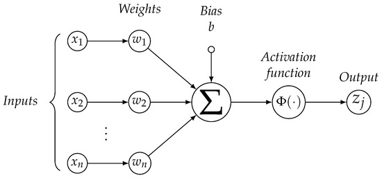 Figure 1 shows a graphic representation of an artificial neuron: each input vector is processed by a linear combiner () through the use of a weight vector , and hence transformed with the aid of a proper activation function (usually the sigmoid). At this stage a bias value can be inserted to delay the triggering of the activation function.
