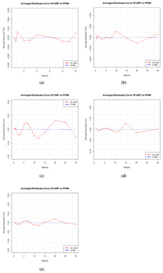 Average residuals generated by 5F-DRF and FFNN for Brazil (a), Russia (b), India (c), China (d), South Africa (e).