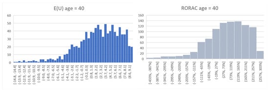 Estimating the expected profit and relative distribution, we obtain the probability of a negative profit, which could prove very useful to understand that even in the presence of a positive profit value, the risk of obtaining a negative result could be high. For example, taking into account the 2022 contracts, the probability of a negative profit is equal to 0.596 for policyholders at age 20, 0.253 at age 40, and 0.012 at age 60. Therefore, while for policyholders aged 60 the probability of obtaining a negative result is negligible, for policyholders aged 40, despite a very positive value of profit and , this probability is to be taken into account and confirms the importance of a good pricing and longevity risk monitoring system.