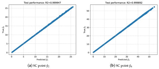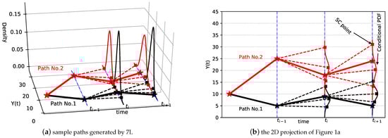 Suppose a vector of samples at time , and we wish to generate samples of . For a specific sample , we need to calculate conditional SC points. To obtain the k-th () conditional SC point, we take marginal collocation points and their k-th conditional collocation points, using functions (28) and (29), to form input-output pairs . This combination gives us the interpolation function , through which we can obtain the k-th conditional SC point of at time point ,