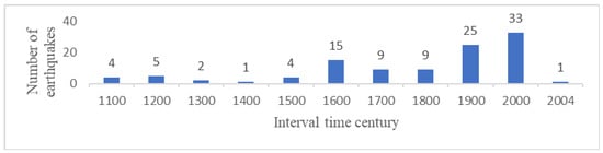 The Figure 2 shows earthquakes that were recorded in this area, per century.