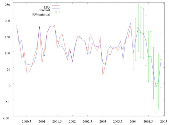 Convergent monthly forecasts of the company’s financial liquidity (LIQTp) for the year 2004. Source: own calculations using the GRETL package.