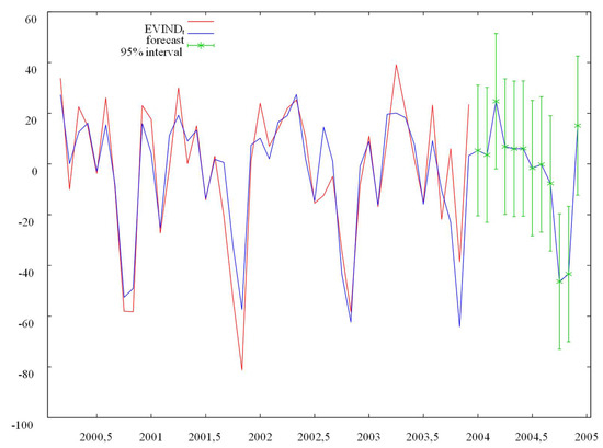 Convergent monthly forecast of the company’s debt recovery efficiency (EVINDTp) for the year 2004. Source: own calculations using the GRETL package.