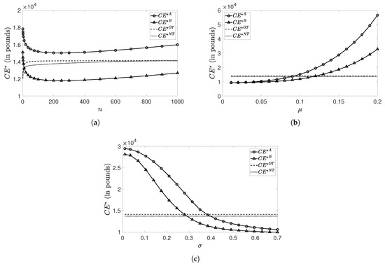 where and are the mean and the variance parameter of the normal distribution truncated on the interval , respectively. Table 1 summarizes the assumed baseline values for the relevant parameters and their corresponding ranges for n, , , and , used in our sensitivity analyses.