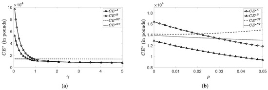 where represents the consumable input and adhering to is the measure of the policyholder’s relative risk aversion. This choice is one of the most frequently used utility functions to capture the preferences of individuals (see, e.g., Levy 1994; Sharpe 2017).3 In the design problems below, we assume that expectations are not subjective.