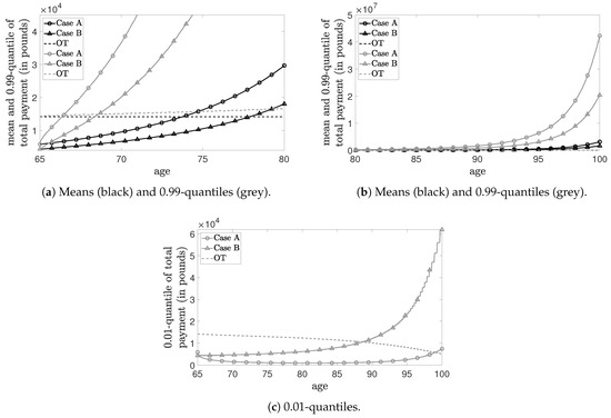 | 10 | In detail, the applied total payments in Figure 3 are determined, for Case A, by , where , for Case B, by , where , and, for the optimal traditional tontine, by . Note that the computation of all depicted quantities is done numerically, where we divide the relevant time line running from to by a constant discretization step size of 0.025, which means that we overall analyze 1401 points, and simulate each occurring random variable 450,000 times. |