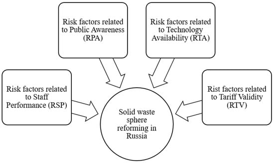 According to (), any change in the waste-management system is subject to risks. The larger the scale of the system and the longer the implementation period for changes, the higher the level of various types of risks. Therefore, when reforming the waste management in the Russian regions, the risk indicator is quite high.