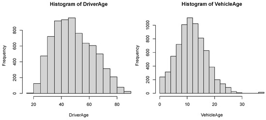 The study is based on data from automobile policies from a major insurance European company for the underwriting years 2012–2019. This data set contains bodily injury (BI) and property damage (PD) claims and their associated claim costs, denoted by and , respectively, and risk factors that affect both and . An exploratory analysis was conducted so as to select the subset of covariates with the highest predictive power for and . There were 7263 observations in total which met our criteria.