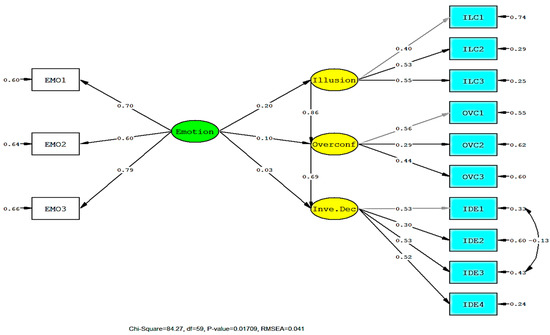 The illusion of control strongly predicted how participants made decisions indirectly, by as much as 59.3%. Other direct and indirect effects were relatively small, but they were acceptable, as this study was psychologically based. Funder and Ozer even argued that an effect size larger than 0.10 is small but still had some potential, while the value above 0.20 is medium, and 0.30 is large and substantial (Funder and Ozer 2019). In retrospect, some sizes were relatively small according to the commonly used power analysis (Cohen 1977). However, the nature of the behavioral-psychological study allowed for a smaller effect size than the investigation in organizational performance (Hair et al. 2014). Those studies confirmed that the size difference presented by our research was still acceptable. A better presentation of the path of revelation can be observed in Figure 1.