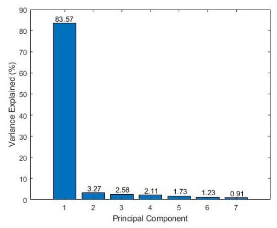 Fractions (%) of Variance Explained by Each of the First 7 Principal Components.