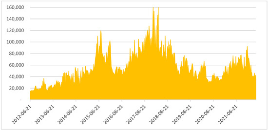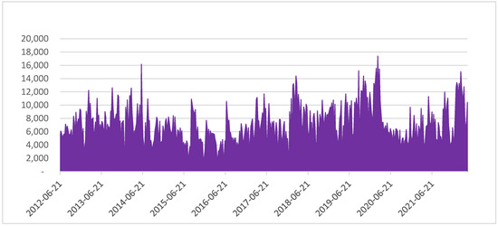 The computation of systemic, climate, and geopolitical risk and combinations thereof requires the collection of balance sheet data. We used Datastream to gather all the reported quarterly results for our sample of banks starting from Q2 of 2011 to Q1 of 2022. The adjusted price data for the 10 securities start on 30 June, 2011, and log returns were computed from the following day, 1 July, 2011, up to and including 29 April, 2022. To ensure synchronicity, only days when all the components of a basket had been traded have been included17, for a total of 2735 observations per each security, index, or factor and an average trading year consisting of 252 sessions. Given that all the banks operate in the same time zone and have adopted the euro as both an operating and reporting currency, there was no need to implement any lag or forex adjustment to complete our study, making the whole estimation process much simpler and faster.