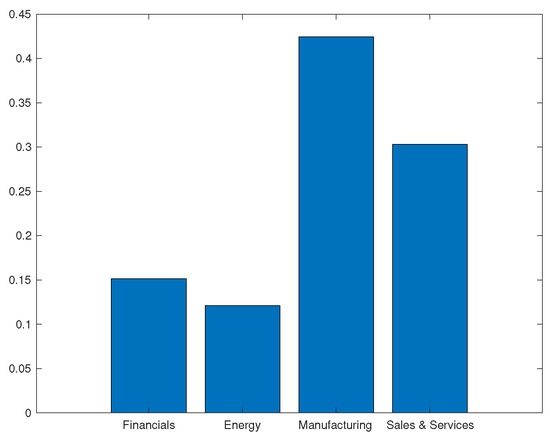 In the same spirit of Carr and Wu (2017), the sample is further divided into four categories based on the industry/type or business: (a) Financial companies; (b) Mining, Energy and Utilities companies; (c) Manufacturing; (d) Retail, Wholesale and Services. See Figure 1 for the relative frequencies of the different sectors. A sub-sample analysis based on these groups is carried out in Section 5.1.