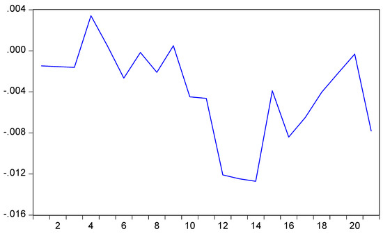 The descriptive statistics of abnormal returns for single days around the delisting announcement are presented in Table 1. It is observed that the mean AR is negative for all single days around announcement dates of delisting, except T − 6 and T − 7. For the post-delisting announcement period, the largest and smallest negative mean ARs are found for T + 3 (−0.0134) and T + 9 (−0.0004), respectively. Moreover, Figure 1 shows that the mean AR tends to decrease for the period from T − 7 to T − 1 and drop sharply during the period from T + 1 to T + 3. In addition, the descriptive statistics of ACAR shown in Table 2 indicate that the mean ACAR is negative for all studied periods following announcement dates of delisting, ranging from −0.0124 [+1, +3] to −0.0070 [+1, +9].